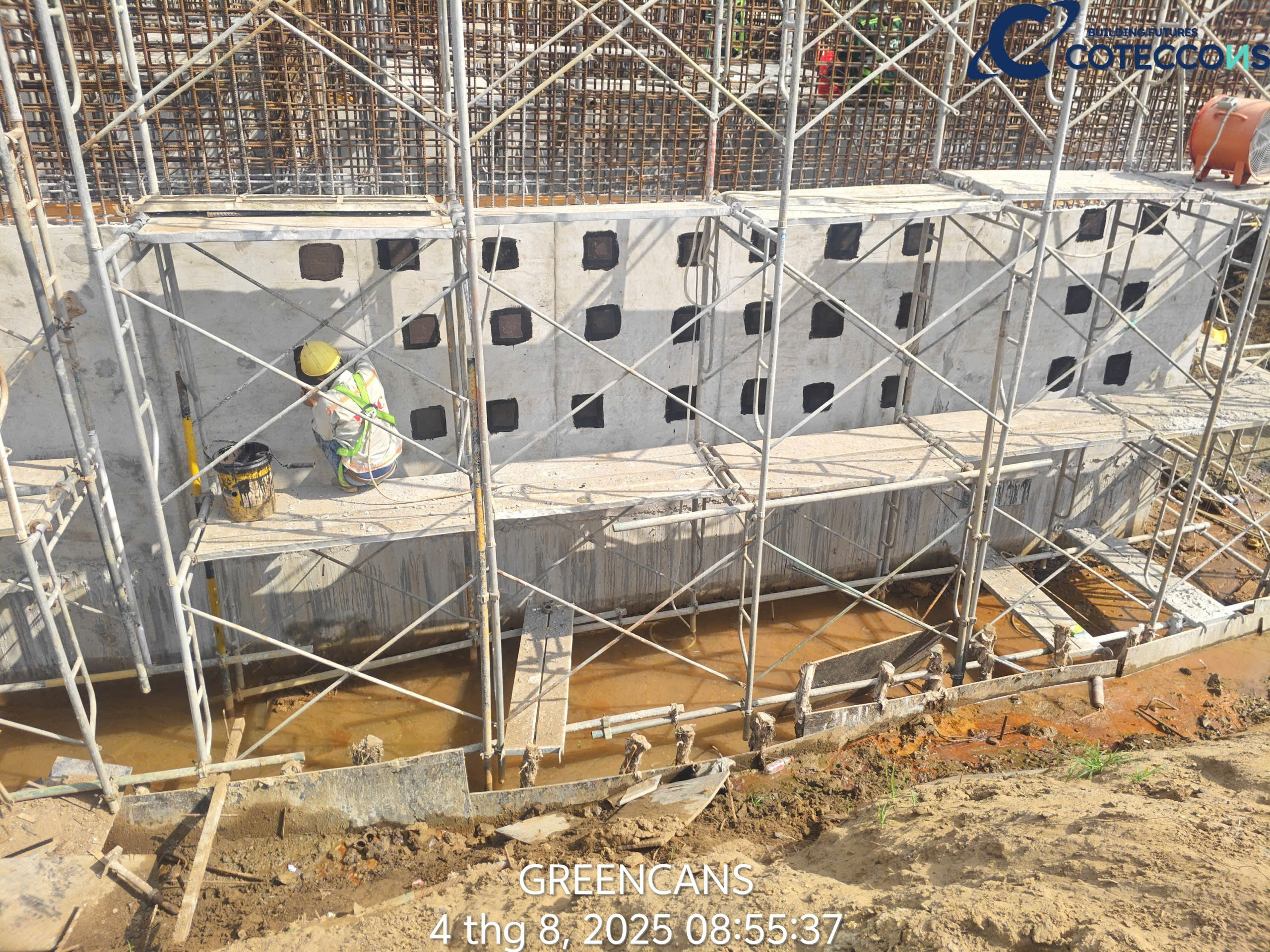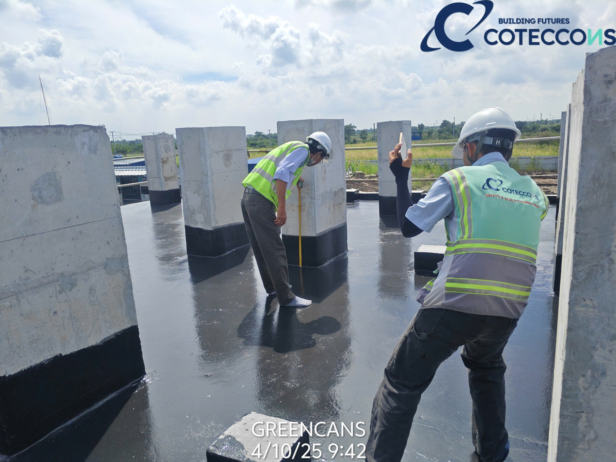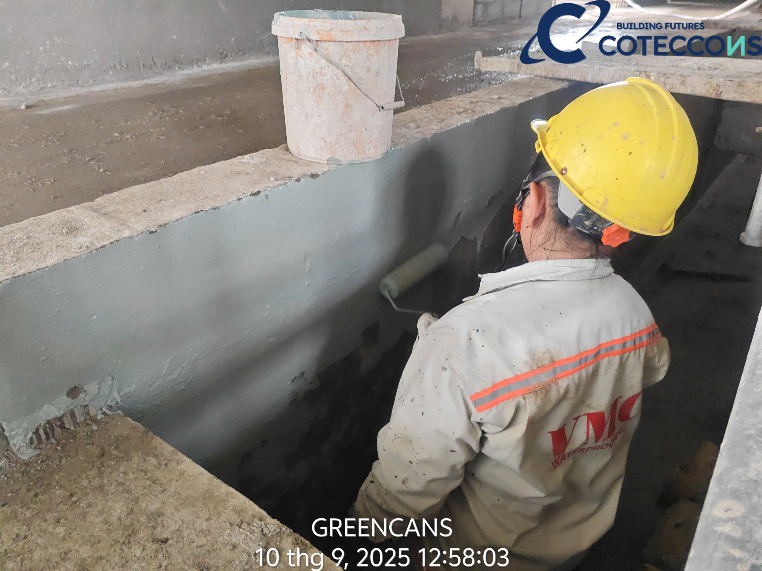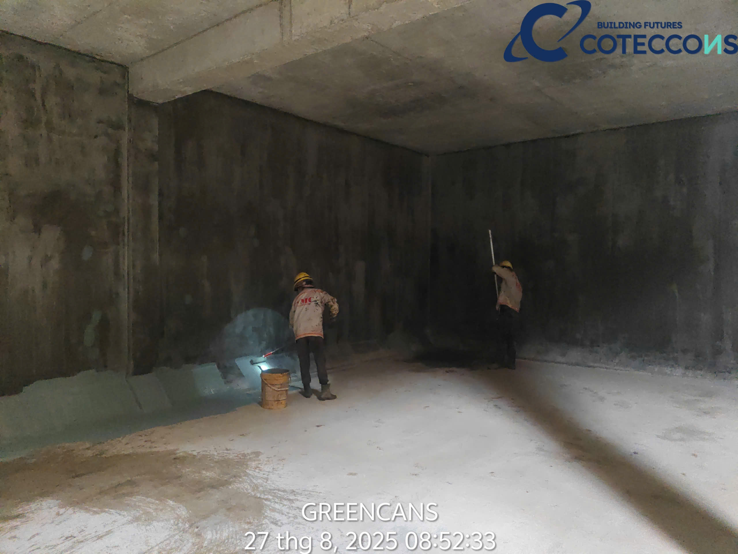 Kiểm tra quân số đầu ngày, thông tin công việc cần triển khai..Nghiệm thu vật liệu đầu vàoKiểm tra khối lượng cấu kiệnChống thấm mặt ngoài vách bểXử lý lỗ ty/ la, trám, dán lưới, chống thấmXử lý mạch ngừng, bù bê tông khuyết, lỗiChống thấm mươngchống thấm mặt trong bểXử lý lỗ ty/ la, trám, dán lưới, chống thấm (mặt trong)Chống thấm máiNghiệm thu chống thấm mái