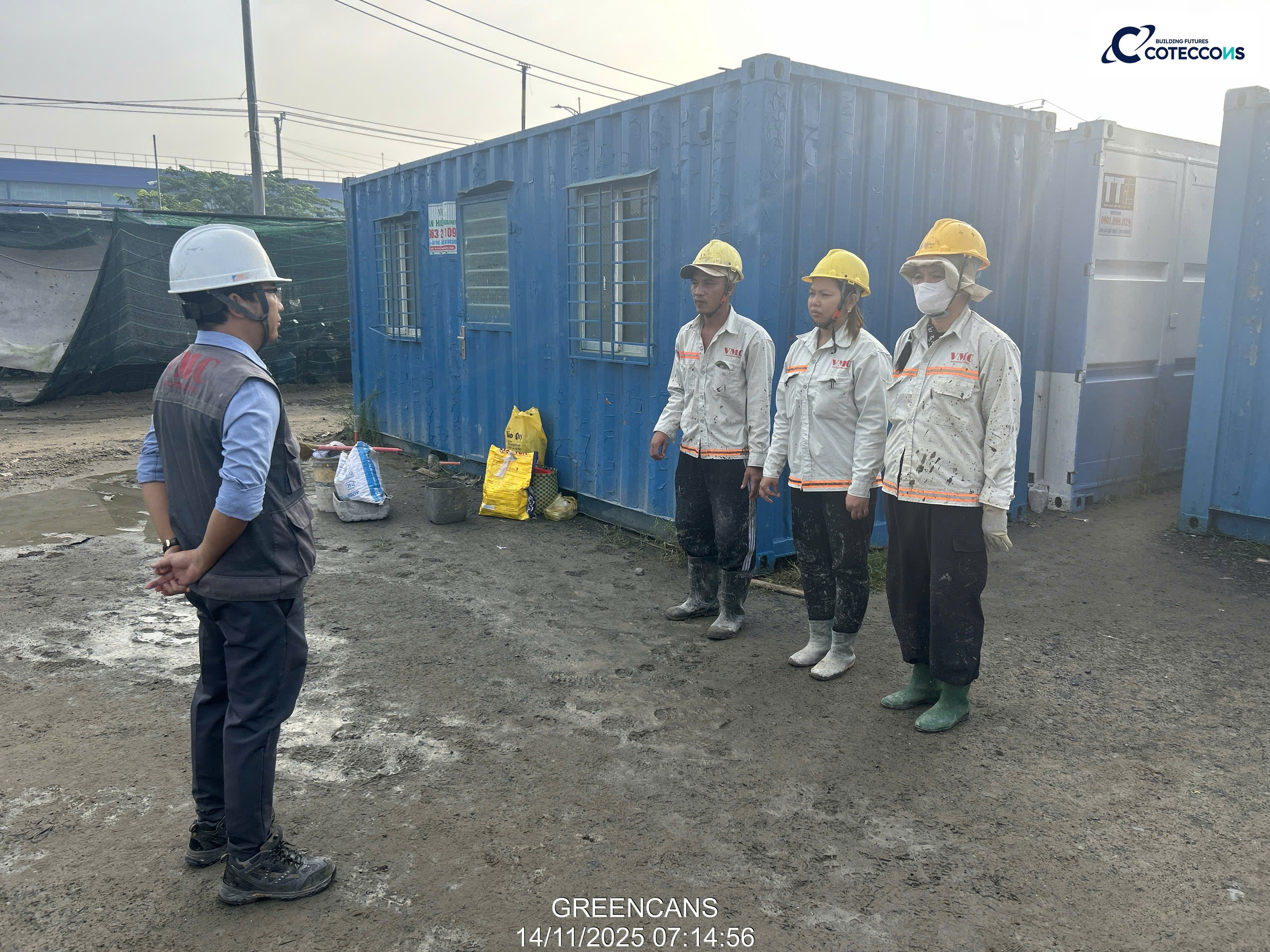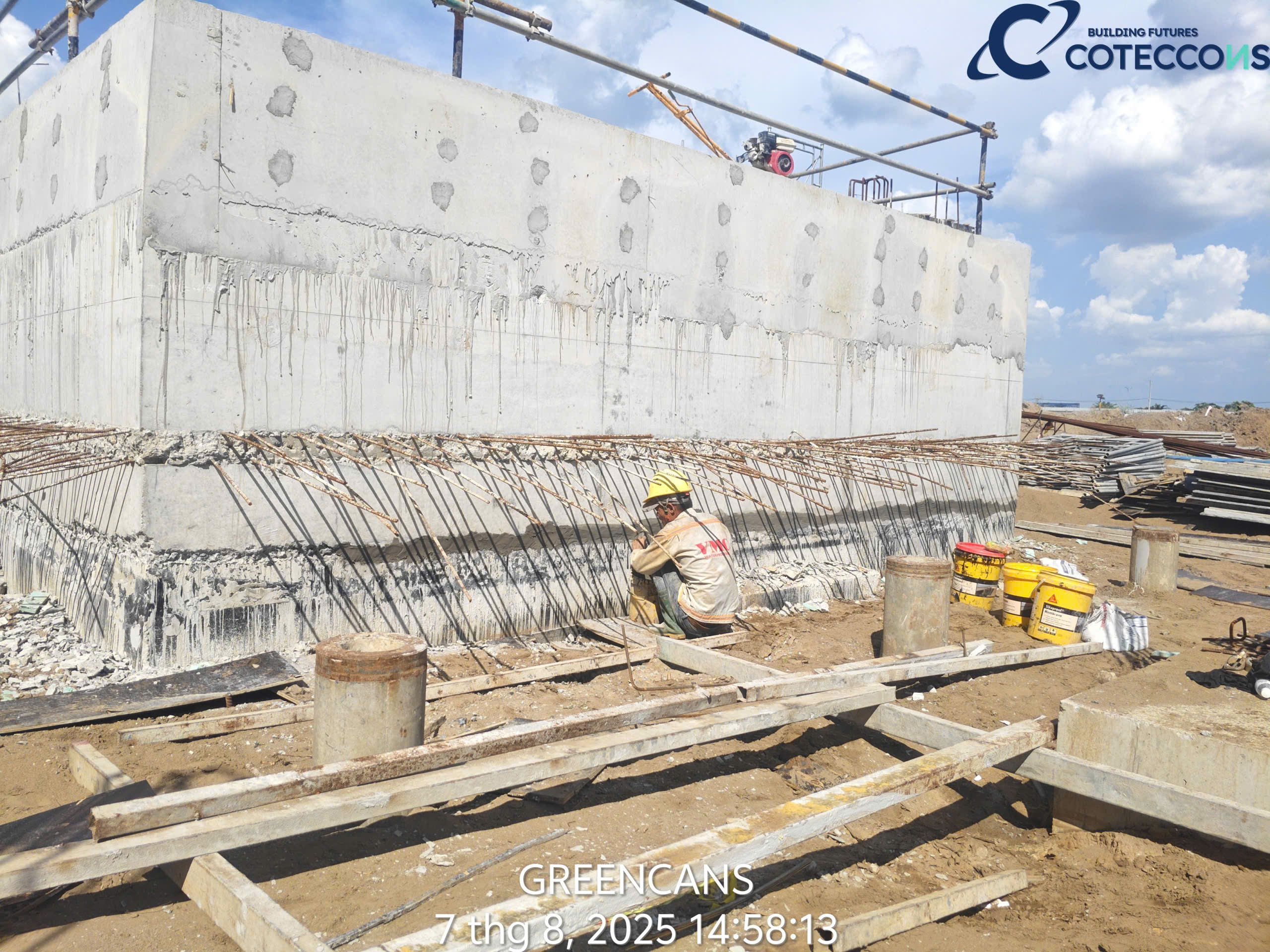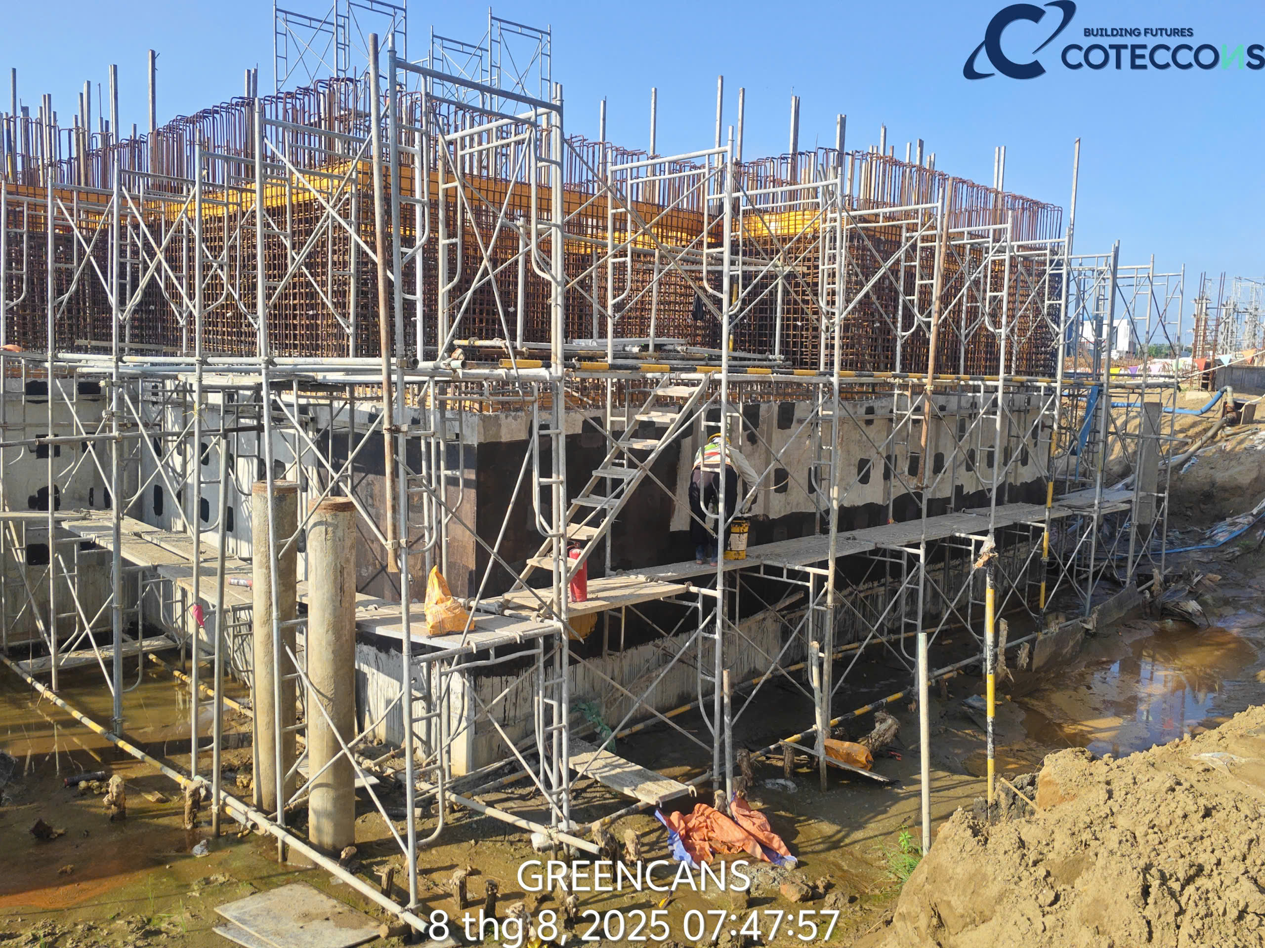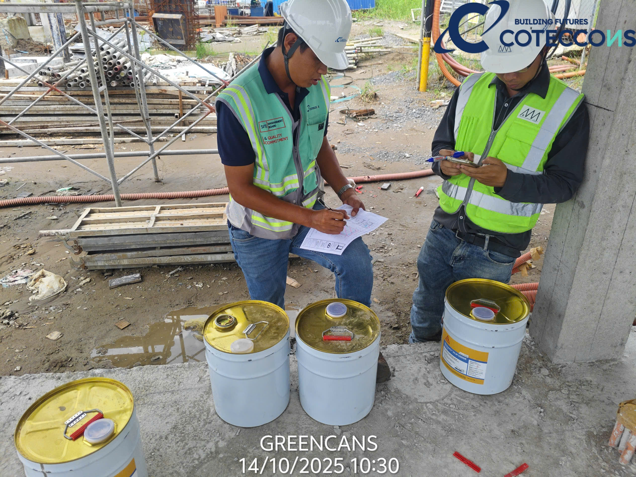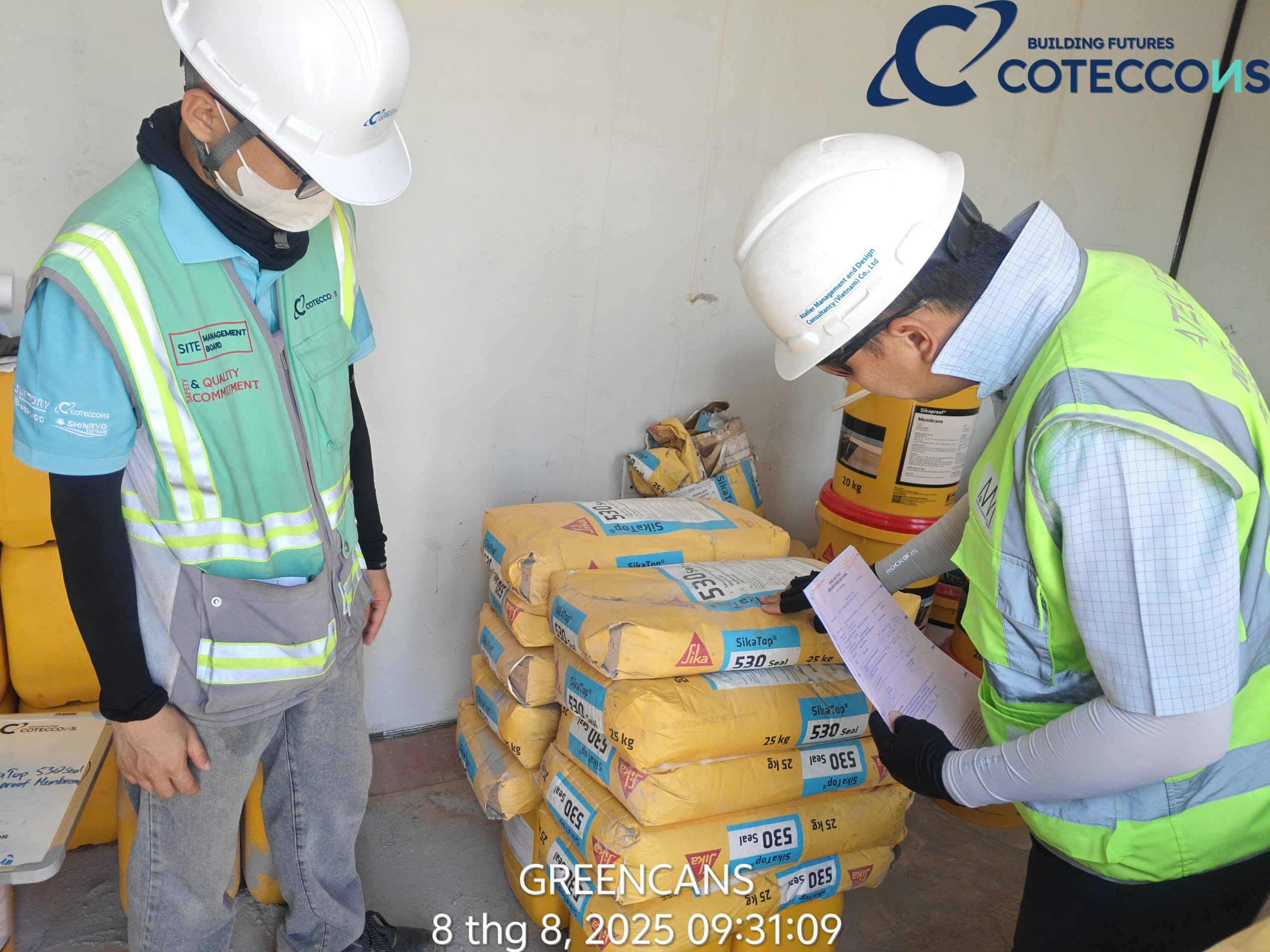 Kiểm tra quân số đầu ngày, thông tin công việc cần triển khai..Nghiệm thu vật liệu đầu vàoKiểm tra khối lượng cấu kiệnChống thấm mặt ngoài vách bểXử lý lỗ ty/ la, trám, dán lưới, chống thấmXử lý mạch ngừng, bù bê tông khuyết, lỗiChống thấm mươngchống thấm mặt trong bểXử lý lỗ ty/ la, trám, dán lưới, chống thấm (mặt trong)Chống thấm máiNghiệm thu chống thấm mái